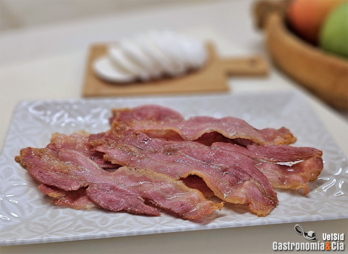 Comprobaréis también que la cocción es uniforme, que el bacon queda tan crujiente como deseemos, que el olor no invade la cocina y lo dicho, se hace en menos de cinco minutos y sin ensuciar los fogones y la encimera.