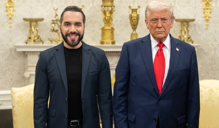 “Le pregunté al presidente —ya sabe, es un complejo carcelario enorme que él construyó—. Le dije: ‘¿Podría construir más, por favor? Tantos como podamos sacar de nuestro país, los que el incompetente Joe Biden permitió entrar a través de las fronteras abiertas’”, declaró Trump durante una reunión con Bukele en la Oficina Oval.