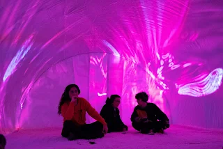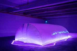 blanca hinchable donde las y los espectadores entran por 20 minutos, para
