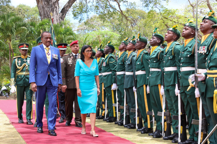 En el marco de su visita oficial a Barbados, la presidenta (E) de la República, Delcy Rodríguez, fue recibida este lunes 27 de abril por la primera ministra de ese país, Mia Mottley.